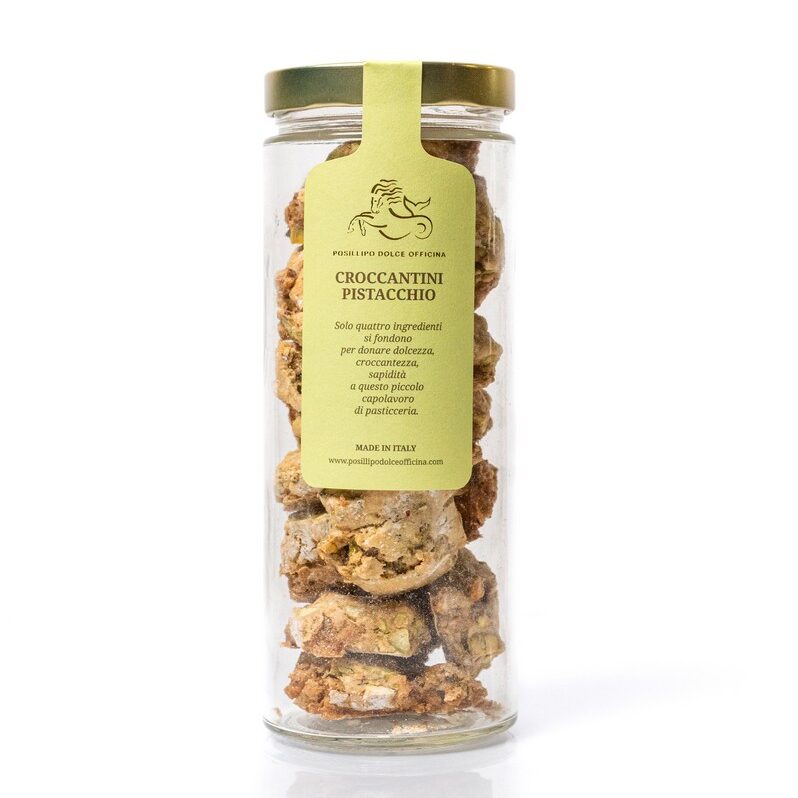 Dolci e semplici biscotti croccanti ricchi di pistacchi interi siciliani. L’impasto dei biscotti è arricchito dal sale rosso delle Hawaii, un particolare sale in fiocchi che esalta la dolcezza e l’aromaticità dei pistacchi. I croccantini al pistacchio sono biscotti semplici ma dal grande equilibrio aromatico.